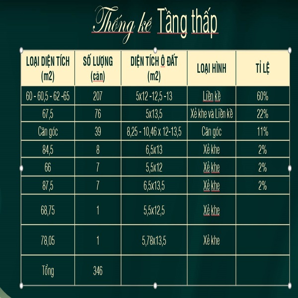 Nhà liền kề thương mại : 346 căn xây dựng 3.5 tầng trên diện tích đất 24.167m2
