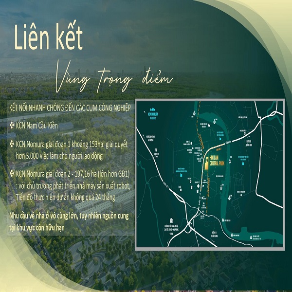 Tiềm năng dự án Him Lam Central Park: Với lợi thế là cửa ngõ phía Tây, Gần 5 cụm công nghiệp lớn nhất Hải Phòng. Tiềm năng ở nơi đây không thế chối từ, khi lợi thế khai thác được hàng trăm nghìn công nhân, hàng ngàn cán bộ đang thiếu không gian xanh để ở và an cư tại nơi đây.